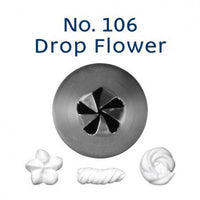 The No. 106 drop flower nozzle is a standard piping tip designed for creating perfectly shaped floral decorations with a single squeeze. Ideal for buttercream and royal icing, it produces well-defined, structured flowers for cakes, cupcakes, and cookies.